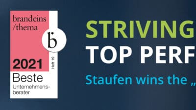 Köngen – as part of the renowned industry study by brand eins and Statista, the consulting company Staufen received the “Best Consultants 2021” award in nine categories. Underlying this success is a consulting approach that prepares companies consistently for transformation and adaptation. As in previous years, Staufen won over the trade experts and customers surveyed as an operations expert in its primary industries mechanical engineering and automotive, but it has also achieved recognition as an expert in the fields of supply chain management, restructuring, growth, and innovation and organizational consulting.